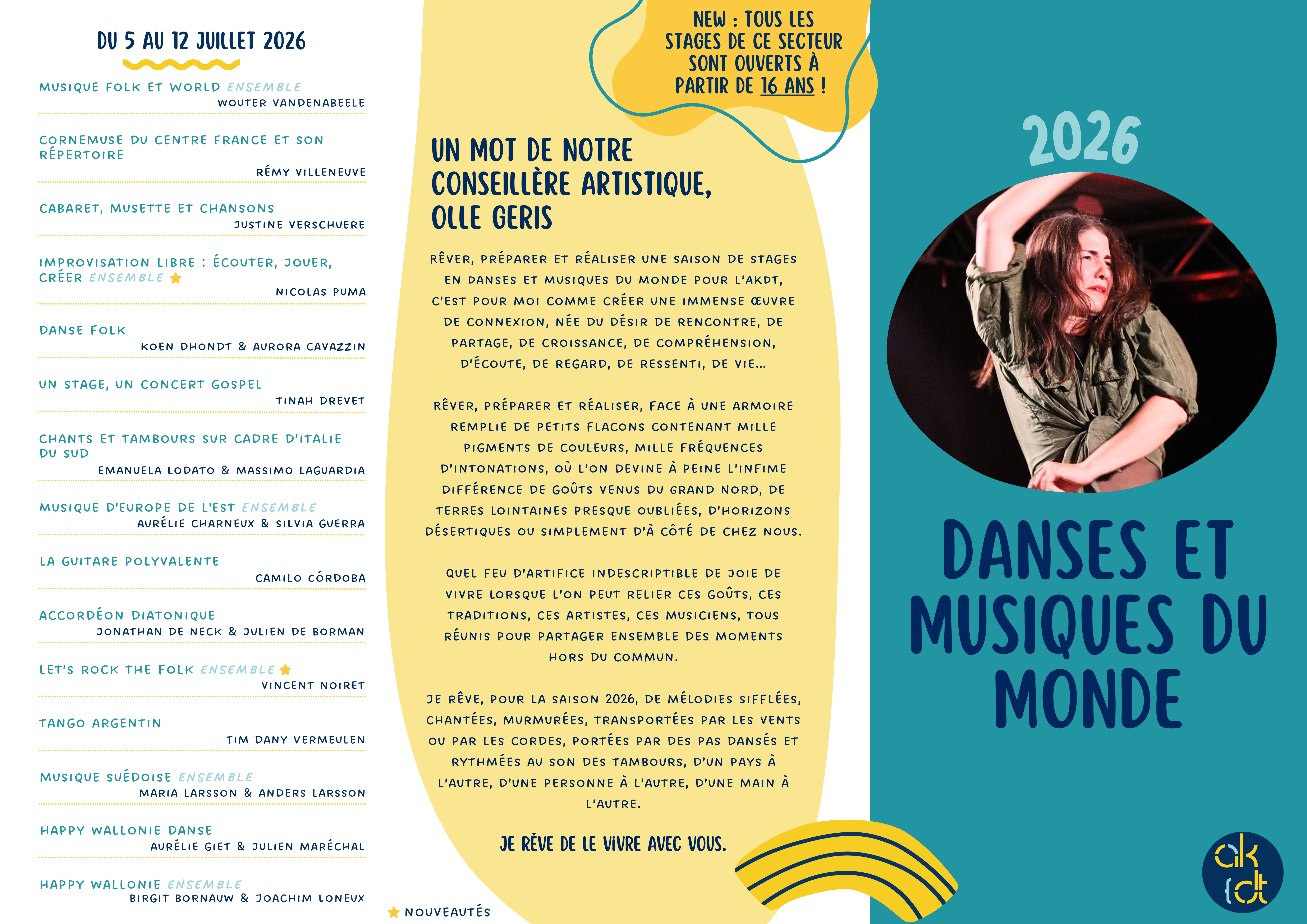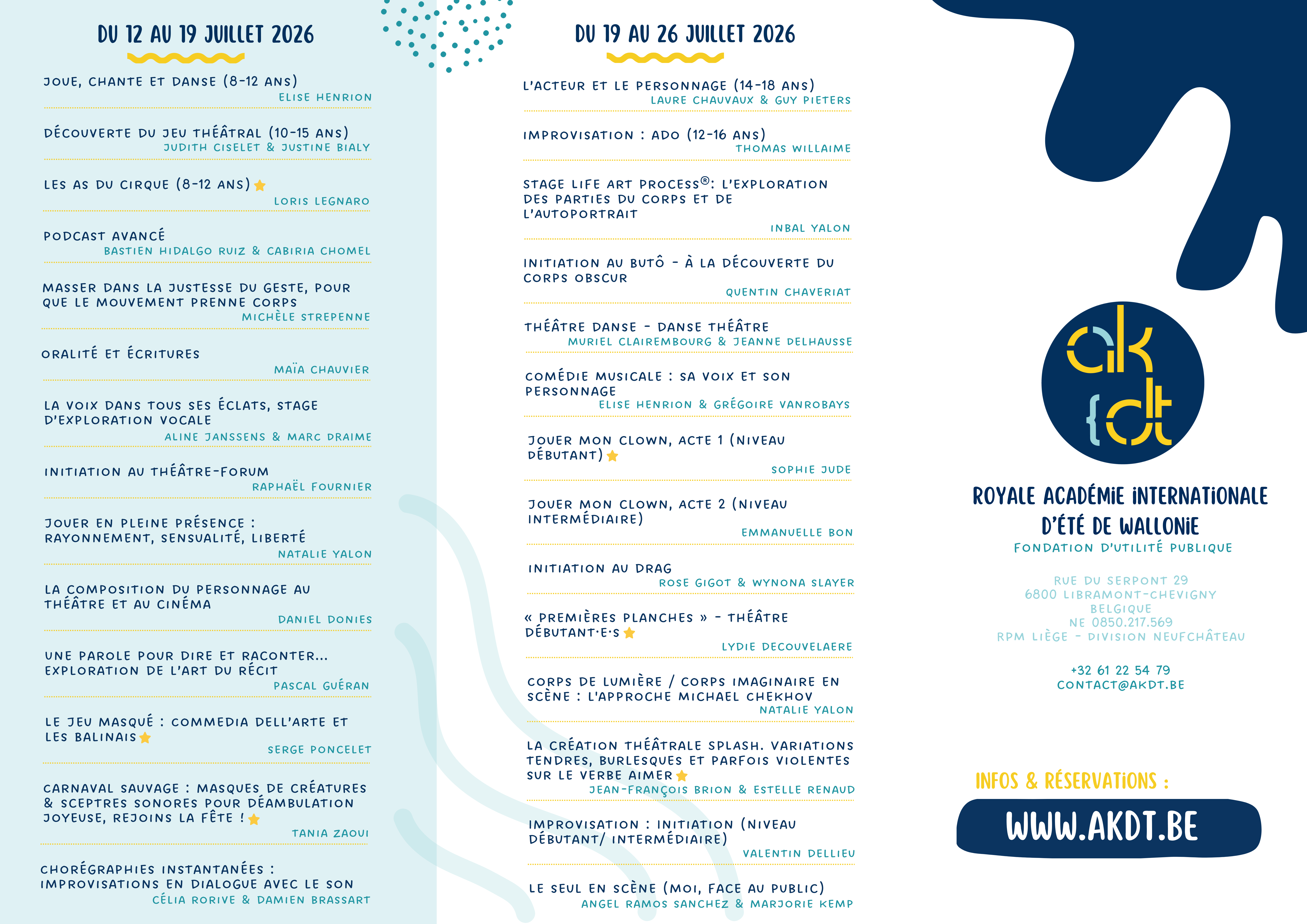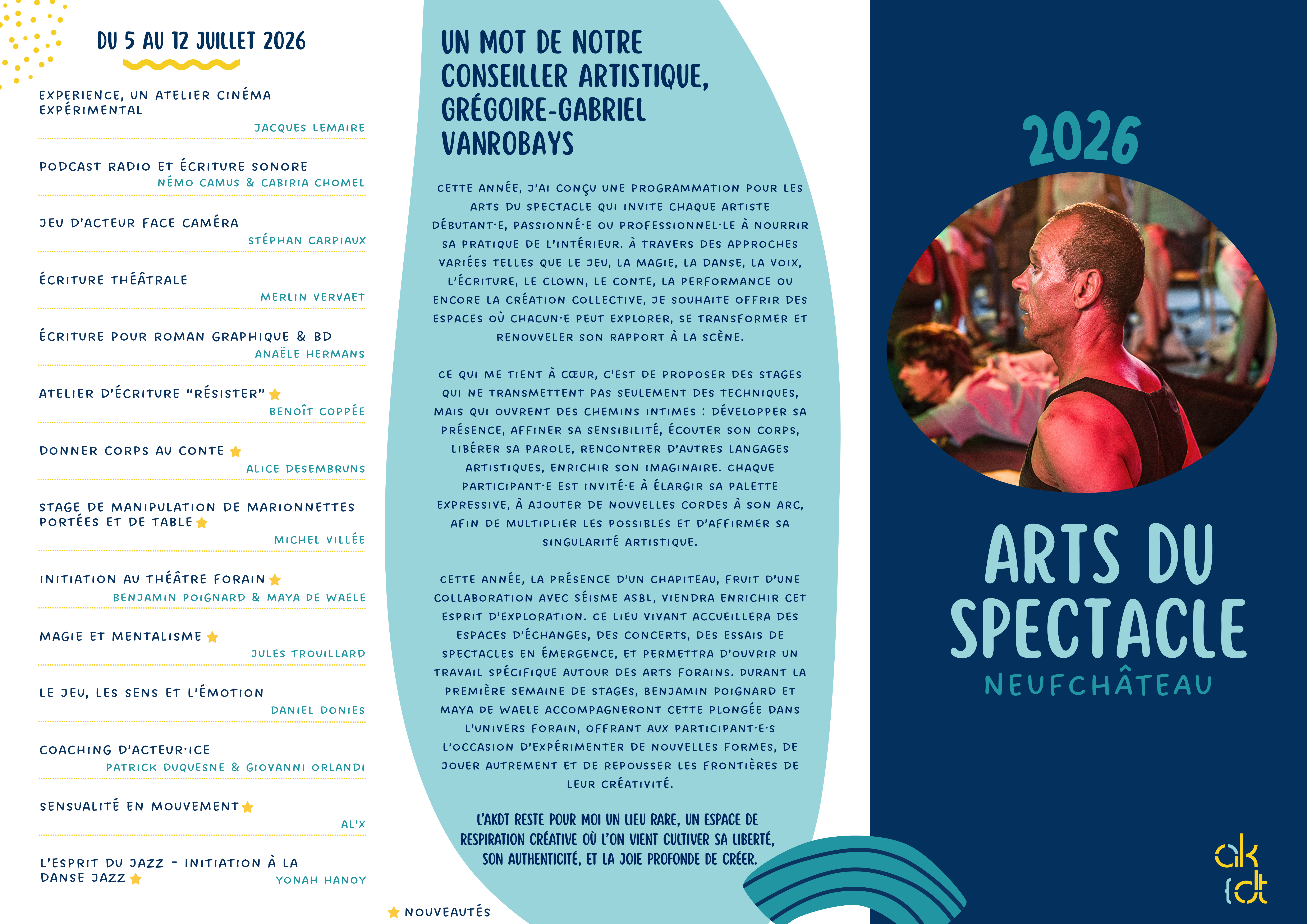 À partir du lundi 2 mars 2026, le descriptif détaillé de chaque stage sera dévoilé, afin de vous laisser encore plus de temps pour explorer et choisir l’atelier qui vous convient le mieux.
